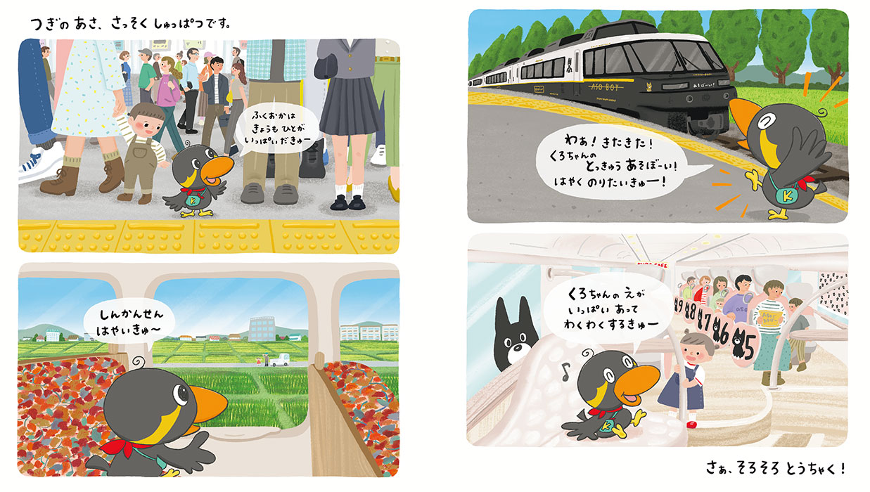 人気キャラクターたちとともに、九州の観光スポットを旅する絵本です。