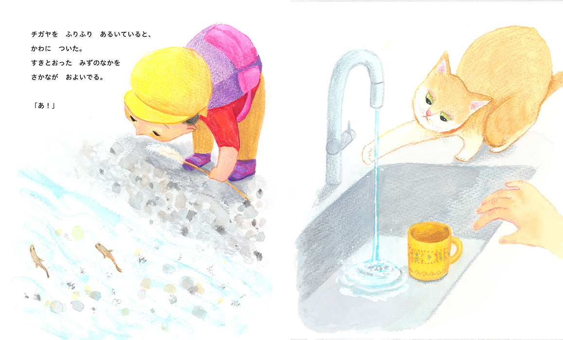 楽しみにしていたことが叶わなくなったとき、気持ちをきりかえるのは容易ではありませんね。本作のぼくも、愛猫との遠足を指折り数えていたので、ひとりでの出発は下を向いてしまいます。見ることすること全てが愛猫と重なり、それはより落ちこませることでもありましたが、紙一重で気持ちを昂揚させることでもありました。離れていても目の前に現れていなくても、遠足の一歩一歩に、相手を、大好きな日常を感じられたのでした。