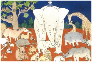 詩人まど・みちおの没後10周年を記念して生まれた絵本『ぼくが ここに』の原画を中心に、
